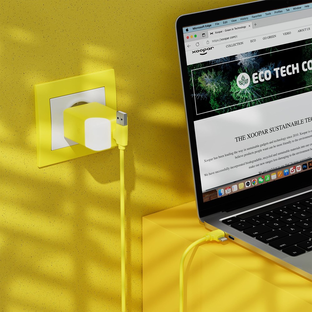 Dieses 65-W-GaN-Netzteil ist für das schnelle und effiziente Aufladen von Laptops, Tablets und Smartphones konzipiert. Er verfügt über einen USB-A-Anschluss mit bis zu 18 W Leistung und einen Typ-C-Anschluss mit bis zu 65 W Leistung. Wenn beide Anschlüsse gleichzeitig verwendet werden, bietet er eine maximale Leistung von 9 W pro Anschluss. Die intelligente Ladeanzeige zeigt nicht nur den Ladestatus an, sondern schaltet sich auch aus, sobald das Gerät vollständig aufgeladen ist, und kann durch Berühren manuell ausgeschaltet werden. Das kompakte und praktische Design macht es einfach zu benutzen. Es ist aus feuerfestem, recyceltem Kunststoff hergestellt, der Sicherheit und Nachhaltigkeit gewährleistet. Egal, ob Sie zu Hause, im Büro oder unterwegs sind, dieser Adapter ist eine zuverlässige Stromversorgungslösung für alle Ihre Geräte.