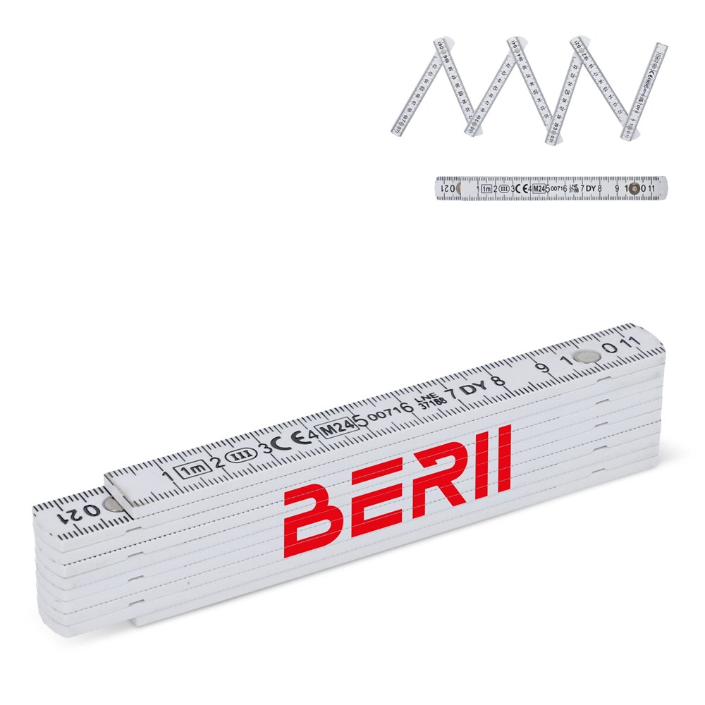 Kalibrierter Zollstock mit einer Gesamtlänge von 1 Meter. Dieser Maßstab entspricht der Europäischen Messgeräterichtlinie (MID 2014/32/EU), Klasse 3. Das bedeutet, dass der Zollstock gemäß den europäischen Richtlinien für hohe Messgenauigkeit zertifiziert ist.