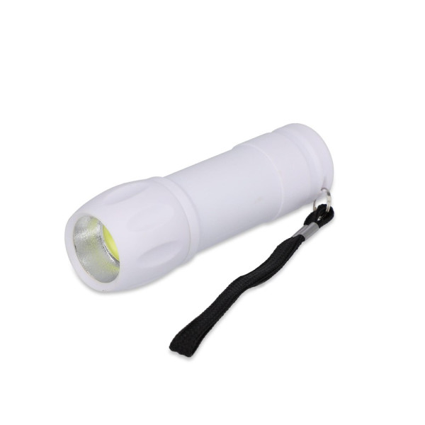 Kompakte Taschenlampe aus recyceltem ABS mit einem 80lm COB-Licht. Mit Handschlaufe zum einfachen Tragen und 3 x AAA-Batterien für den sofortigen Einsatz. Ideal für alltägliche Aufgaben und Outdoor-Aktivitäten.