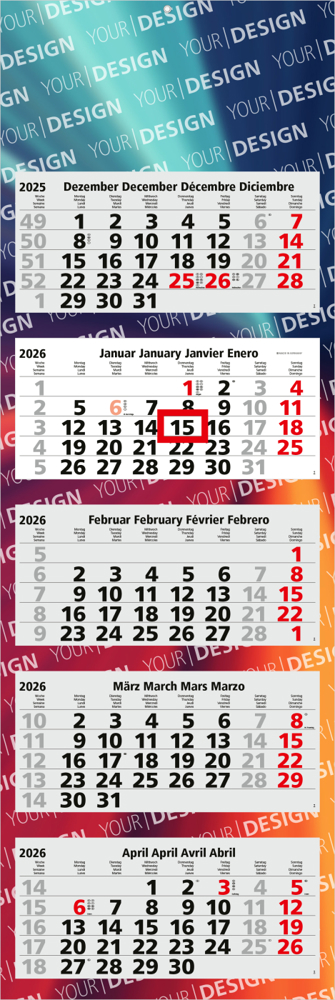 Der Penta Light 5 Bestseller ist ein klassischer 5-Monatskalender, der durch sein klares Design und eine große Werbefläche überzeugt. Mit seinem viersprachigen Kalendarium, der portooptimierten Verarbeitung und dem hochwertigen 4C-Digitaldruck erfüllt dieser Kalender höchste Ansprüche an Funktionalität und Markenpräsenz. Hergestellt in Deutschland, verbindet er Qualität mit Flexibilität.