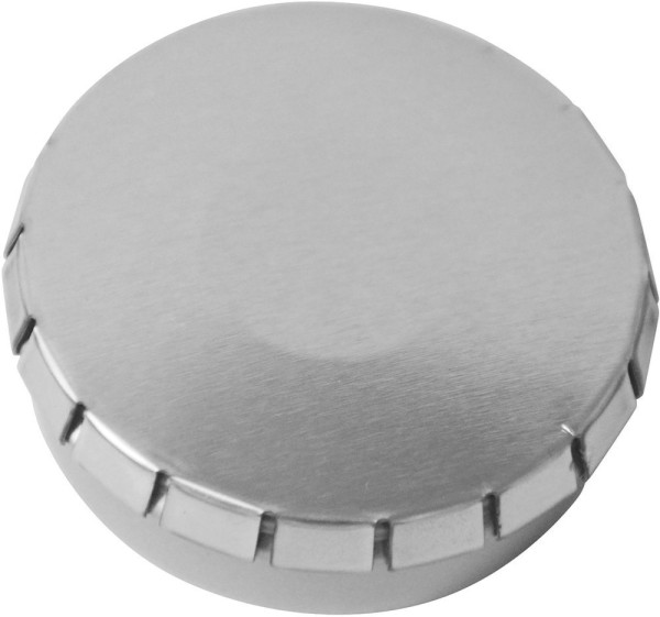 MINI-Drück-mich-Dose silber-glänzend mit mentos