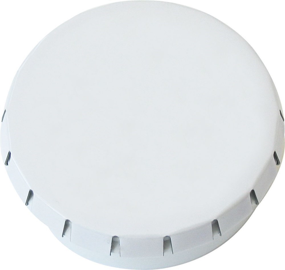Metalldose weiß oder silberfarben, rund, wiederbefüllbar, einzeln gesleevt mit roter Aufreißhilfe.
