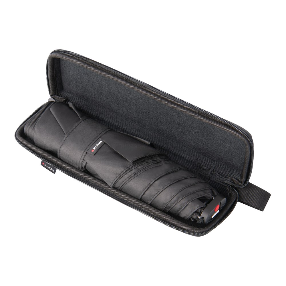 Wohin mit dem nassen Regenschirm nach Gebrauch? Natürlich in das Knirps Dry Case®! Ausgestattet mit saugfähiger Mikrofaser schützt es clever alle wasserempfindlichen Gegenstände in der Tasche vor Nässe. Mit nur 130 g Gewicht und seiner praktischen kleinen Größe bleibt der Schirm immer griffbereit. Kinderleichte Bedienung und Stabilität im Wind unterstreichen knapp 100 Jahre „German Engineering“. 5 Jahre Garantie machen den kompakten X4U zum treuen Begleiter bei „Whatever the Weather“.