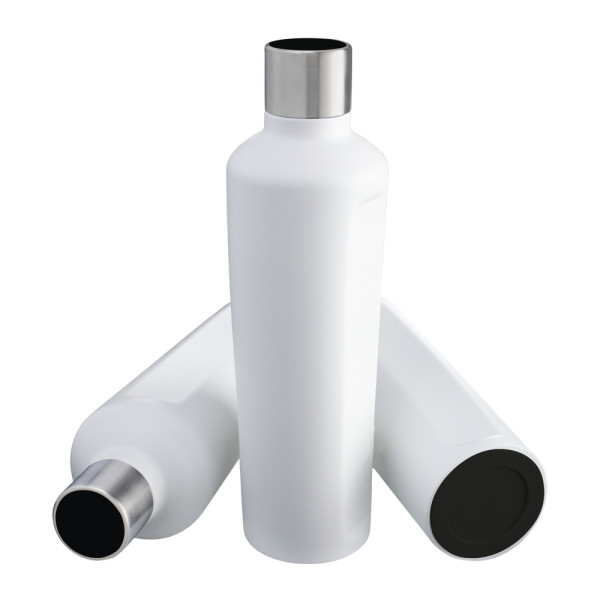 Ein echter Hingucker: Die doppelwandige Thermotrinkflasche mit Vakuum-Isolierung kann mit einem farbigen TPR-Boden und Deckelakzent aus Silikon kombiniert werden. Viele verschiedene Farben stehen ab Köln zur Auswahl. Die von REFLECTS selbst designte Flasche wird in drei verschiedenen Farben (Schwarz, Weiß, Silber) mit hochwertiger Pulverbeschichtung angeboten.