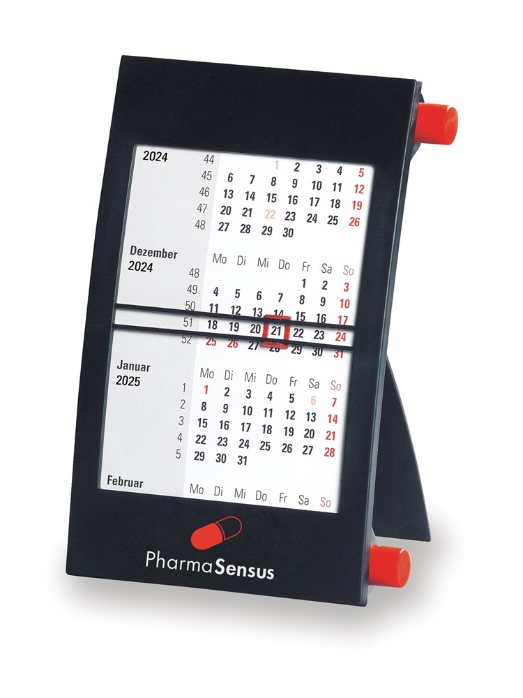 Tischkalender für 2 Jahre mit patentierter Drehmechanik im Kunststoffgehäuse mehr