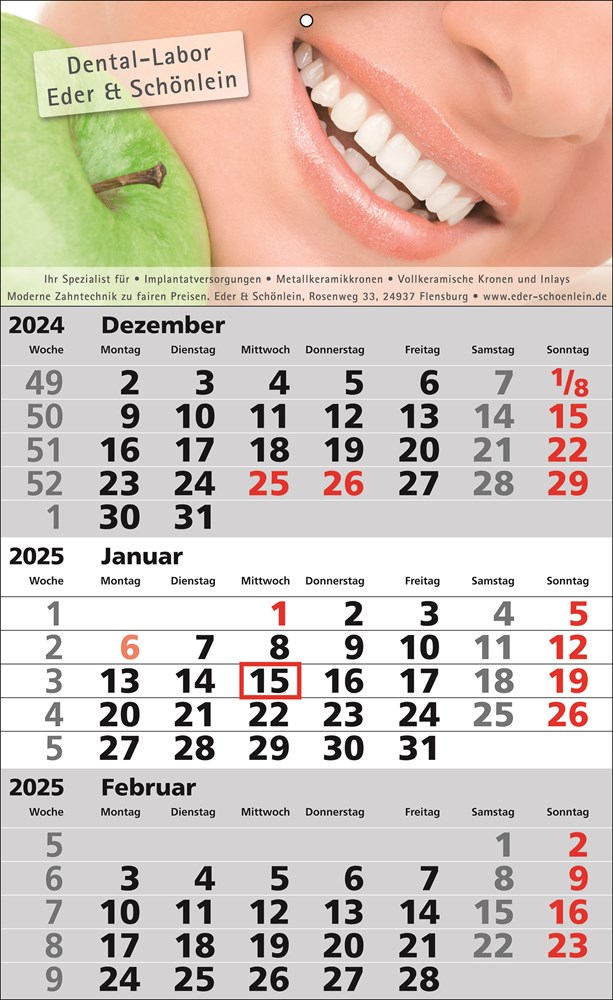 Papierwandkalender mit 3 Monaten auf einer Seite, deutsch-sprachig