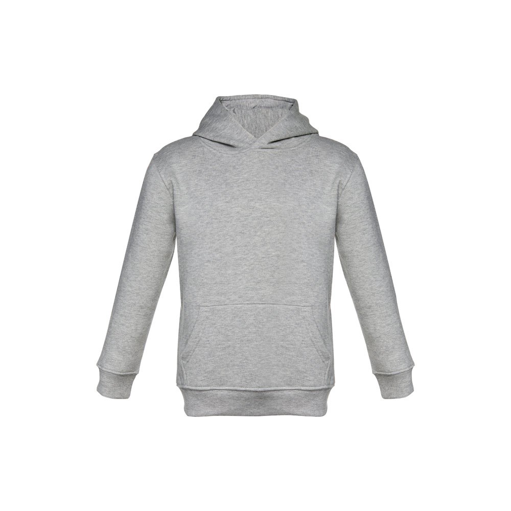 Kinder Sweatshirt aus 50% Baumwolle und 50% Polyester (320g/m²), unisex mit Kapuze in Jersey. Innen kardiert, Ripp 1x1 an Ärmelbündchen und Bund und einer Kängurutasche. Kapuze in Übereinstimmung mit den Sicherheitsstandards der Europäischen Union. Größen: 2, 4, 6, 8, 10, 12