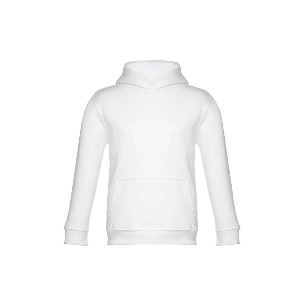 Kinder Sweatshirt aus 50% Baumwolle und 50% Polyester (320g/m²), unisex mit Kapuze in Jersey. Innen kardiert, Ripp 1x1 an Ärmelbündchen und Bund und einer Kängurutasche. Kapuze in Übereinstimmung mit den Sicherheitsstandards der Europäischen Union. Größen: 2, 4, 6, 8, 10, 12