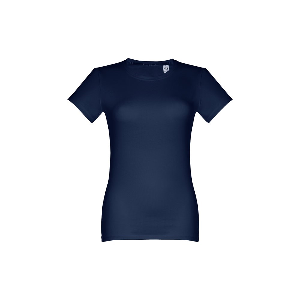 Damen T-shirt aus 100% Strickjersey und Baumwolle (190g/m²) mit kardiertem Baumwollfaden, tailliert. Diese hat einen dünnen Jersey-Kragen mit Satin-Verstärkungsband und Doppelnaht an Ärmeln und Saum. Bei der Farbe 183 bestehend aus 90% Baumwolle und 10% Viskose. Größen: S, M, L, XL, XXL