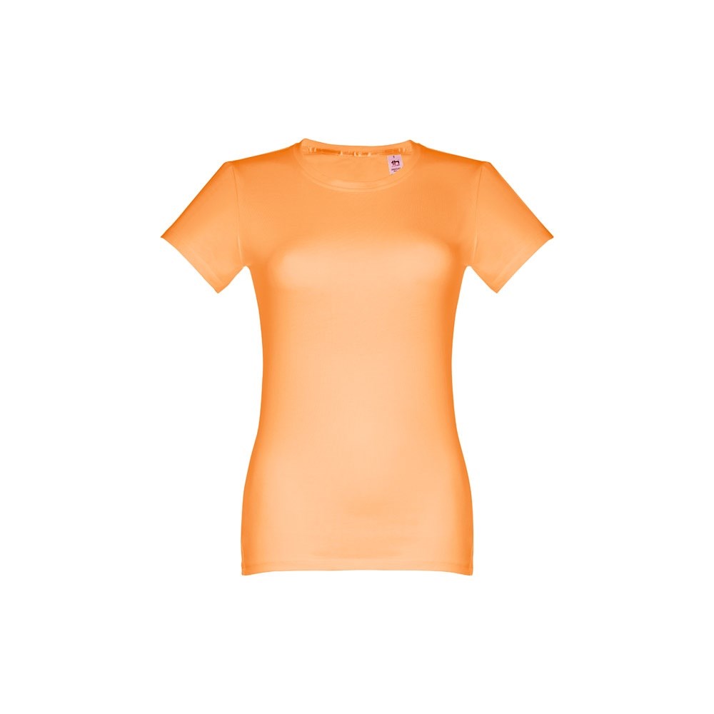 Damen T-shirt aus 100% Strickjersey und Baumwolle (190g/m²) mit kardiertem Baumwollfaden, tailliert. Diese hat einen dünnen Jersey-Kragen mit Satin-Verstärkungsband und Doppelnaht an Ärmeln und Saum. Bei der Farbe 183 bestehend aus 90% Baumwolle und 10% Viskose. Größen: S, M, L, XL, XXL