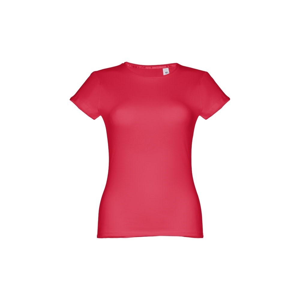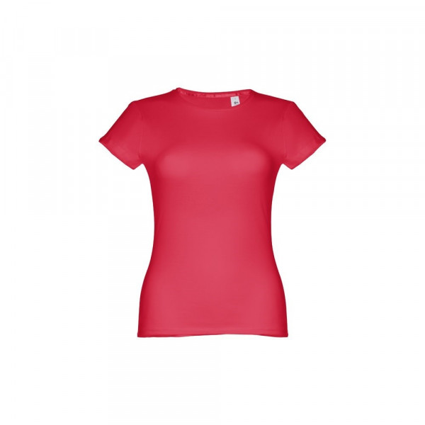 Damen T-shirt aus Strickjersey und 100% Baumwolle (150 g/m²), kurzarm mit kardiertem Baumwollfaden. Bei der Farbe 183 bestehend aus 90% Baumwolle und 10% Viskose. Schmaler Jersey-Kragen mit Satin-Verstärkungsband. Doppelnaht an Ärmeln und Saum. Tailliert. Größe: 3XL