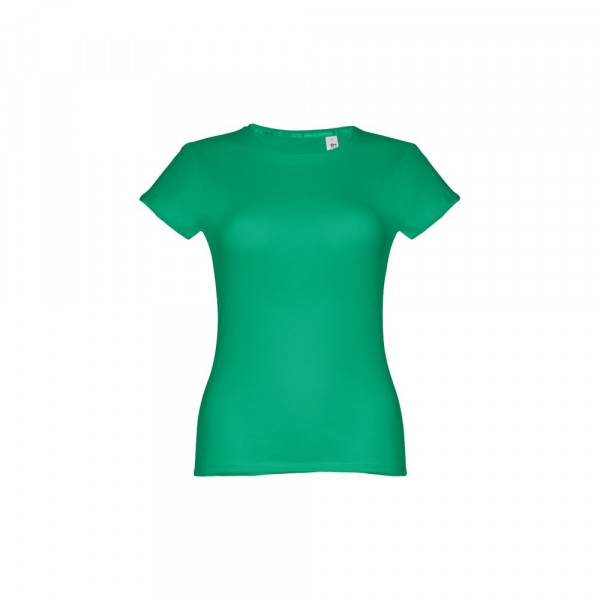 Damen T-shirt aus Strickjersey und 100% Baumwolle (150 g/m²), kurzarm mit kardiertem Baumwollfaden. Bei der Farbe 183 bestehend aus 90% Baumwolle und 10% Viskose. Schmaler Jersey-Kragen mit Satin-Verstärkungsband. Doppelnaht an Ärmeln und Saum. Tailliert. Größe: 3XL