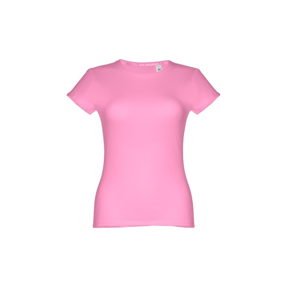 Damen T-shirt aus Strickjersey und 100% Baumwolle (150 g/m²), kurzarm mit kardiertem Baumwollfaden. Bei der Farbe 183 bestehend aus 90% Baumwolle und 10% Viskose. Schmaler Jersey-Kragen mit Satin-Verstärkungsband. Doppelnaht an Ärmeln und Saum. Tailliert. Größe: 3XL