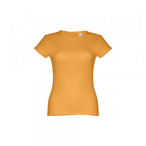 Damen T-shirt aus Strickjersey und 100% Baumwolle (150 g/m²), kurzarm mit kardiertem Baumwollfaden. Bei der Farbe 183 bestehend aus 90% Baumwolle und 10% Viskose. Schmaler Jersey-Kragen mit Satin-Verstärkungsband. Doppelnaht an Ärmeln und Saum. Tailliert. Größe: 3XL