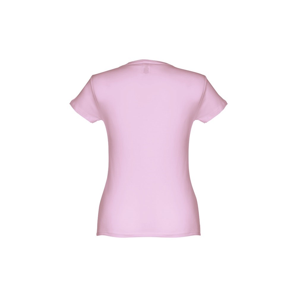 Damen T-shirt aus Strickjersey und 100% Baumwolle (150 g/m²), kurzarm mit kardiertem Baumwollfaden. Bei der Farbe 183 bestehend aus 90% Baumwolle und 10% Viskose. Schmaler Jersey-Kragen mit Satin-Verstärkungsband. Doppelnaht an Ärmeln und Saum. Tailliert. Größe: 3XL