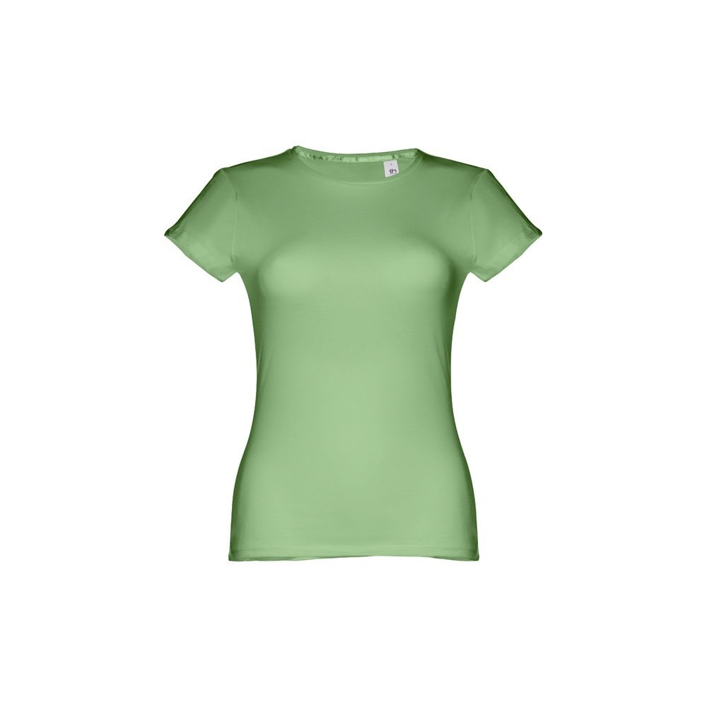 Damen T-shirt aus Strickjersey und 100% Baumwolle (150 g/m²), kurzarm mit kardiertem Baumwollfaden. Bei der Farbe 183 bestehend aus 90% Baumwolle und 10% Viskose. Schmaler Jersey-Kragen mit Satin-Verstärkungsband. Doppelnaht an Ärmeln und Saum. Tailliert. Größe: 3XL