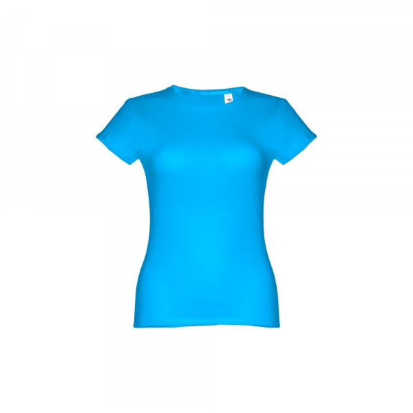 Damen T-shirt aus Strickjersey und 100% Baumwolle (150 g/m²), kurzarm mit kardiertem Baumwollfaden. Bei der Farbe 183 bestehend aus 90% Baumwolle und 10% Viskose. Schmaler Jersey-Kragen mit Satin-Verstärkungsband. Doppelnaht an Ärmeln und Saum. Tailliert. Größe: 3XL