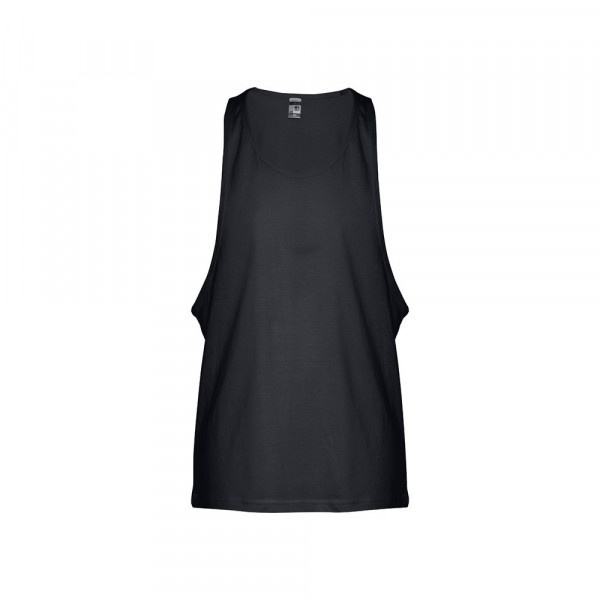 100% gekaard katoenen jersey zonder mouwen voor heren (140 g/m²). Brede armsgaten en ronde kraag, met bias tape op de armsgaten en halslijn. Gesneden en genaaid stuk met dubbele naad aan de onderkant. Maten: XS, S, M, L, XL, XXL