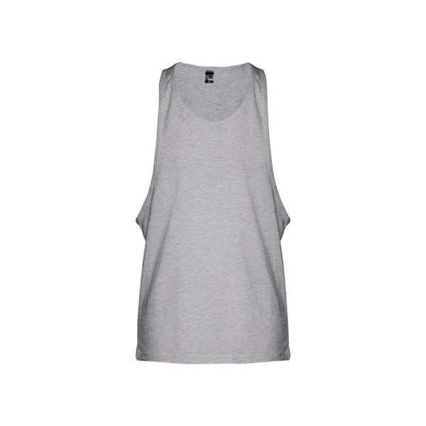 100% gekaard katoenen jersey zonder mouwen voor heren (140 g/m²). Brede armsgaten en ronde kraag, met bias tape op de armsgaten en halslijn. Gesneden en genaaid stuk met dubbele naad aan de onderkant. Maten: XS, S, M, L, XL, XXL