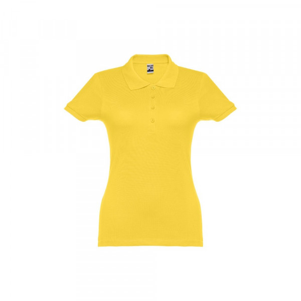 Damen Poloshirt aus Piqué Stoff 100% kardierter Baumwolle (195 g/m²), mit geripptem Kragen und Ärmel, Verstärkungsband am Kragen, verstärkte Knopfleiste mit 4 farblich abgestimmten Knöpfen und einem Ersatzknopf an der Innennaht.Bei der Farbe 183 bestehend aus 85% Baumwolle und 15% Viskose. Größen: S, M, L, XL, XXL