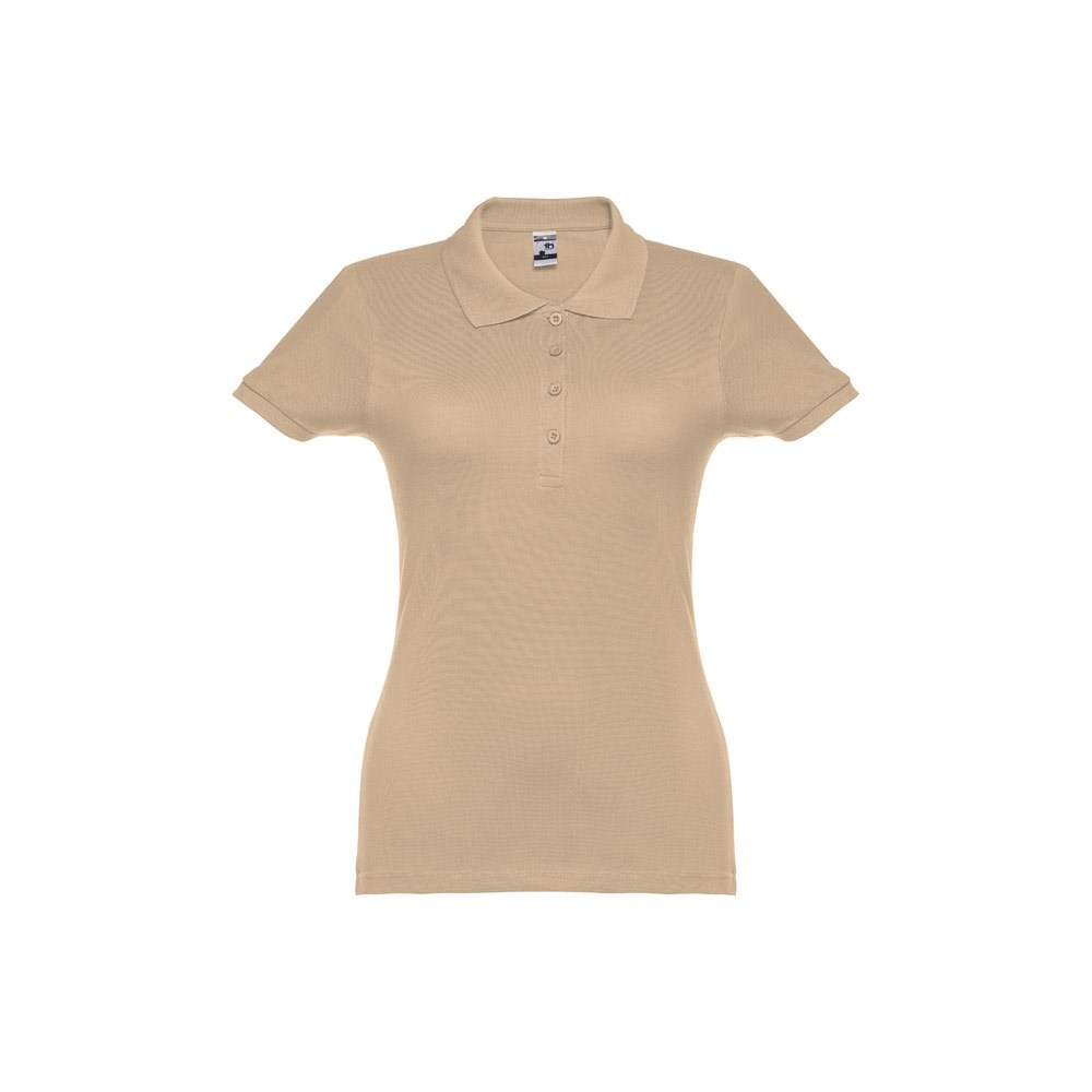 Damen Poloshirt aus Piqué Stoff 100% kardierter Baumwolle (195 g/m²), mit geripptem Kragen und Ärmel, Verstärkungsband am Kragen, verstärkte Knopfleiste mit 4 farblich abgestimmten Knöpfen und einem Ersatzknopf an der Innennaht.Bei der Farbe 183 bestehend aus 85% Baumwolle und 15% Viskose. Größen: S, M, L, XL, XXL