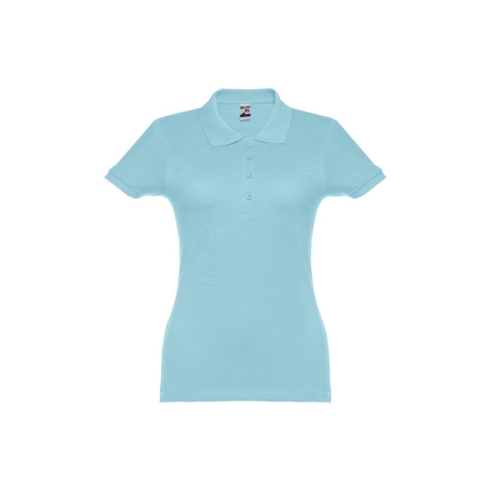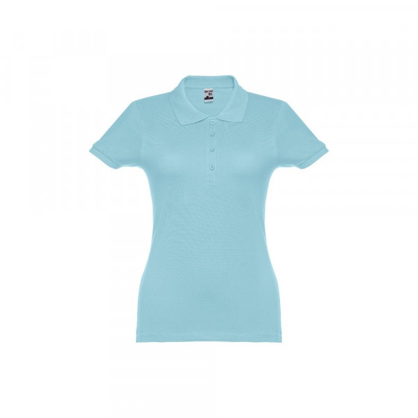 Damen Poloshirt aus Piqué Stoff 100% kardierter Baumwolle (195 g/m²), mit geripptem Kragen und Ärmel, Verstärkungsband am Kragen, verstärkte Knopfleiste mit 4 farblich abgestimmten Knöpfen und einem Ersatzknopf an der Innennaht.Bei der Farbe 183 bestehend aus 85% Baumwolle und 15% Viskose. Größen: S, M, L, XL, XXL