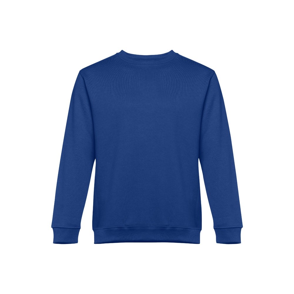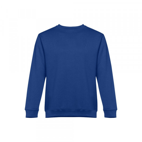 Sweatshirt aus 50% Baumwolle und 50% Polyester (300g/m²), unisex. Innen kardiert, 1x1 Ripp, Bund am Ärmel und Saum, Doppelnaht und Verstärkungsband am Kragen. Größen: S, M, L, XL, XXL