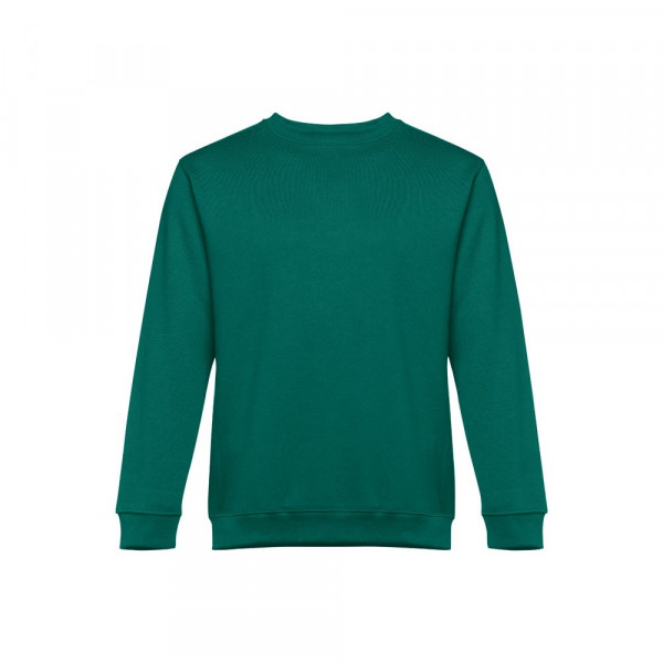 Sweatshirt aus 50% Baumwolle und 50% Polyester (300g/m²), unisex. Innen kardiert, 1x1 Ripp, Bund am Ärmel und Saum, Doppelnaht und Verstärkungsband am Kragen. Größen: S, M, L, XL, XXL