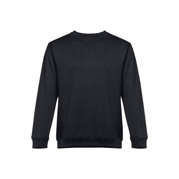 Sweatshirt aus 50% Baumwolle und 50% Polyester (300g/m²), unisex. Innen kardiert, 1x1 Ripp, Bund am Ärmel und Saum, Doppelnaht und Verstärkungsband am Kragen. Größen: S, M, L, XL, XXL