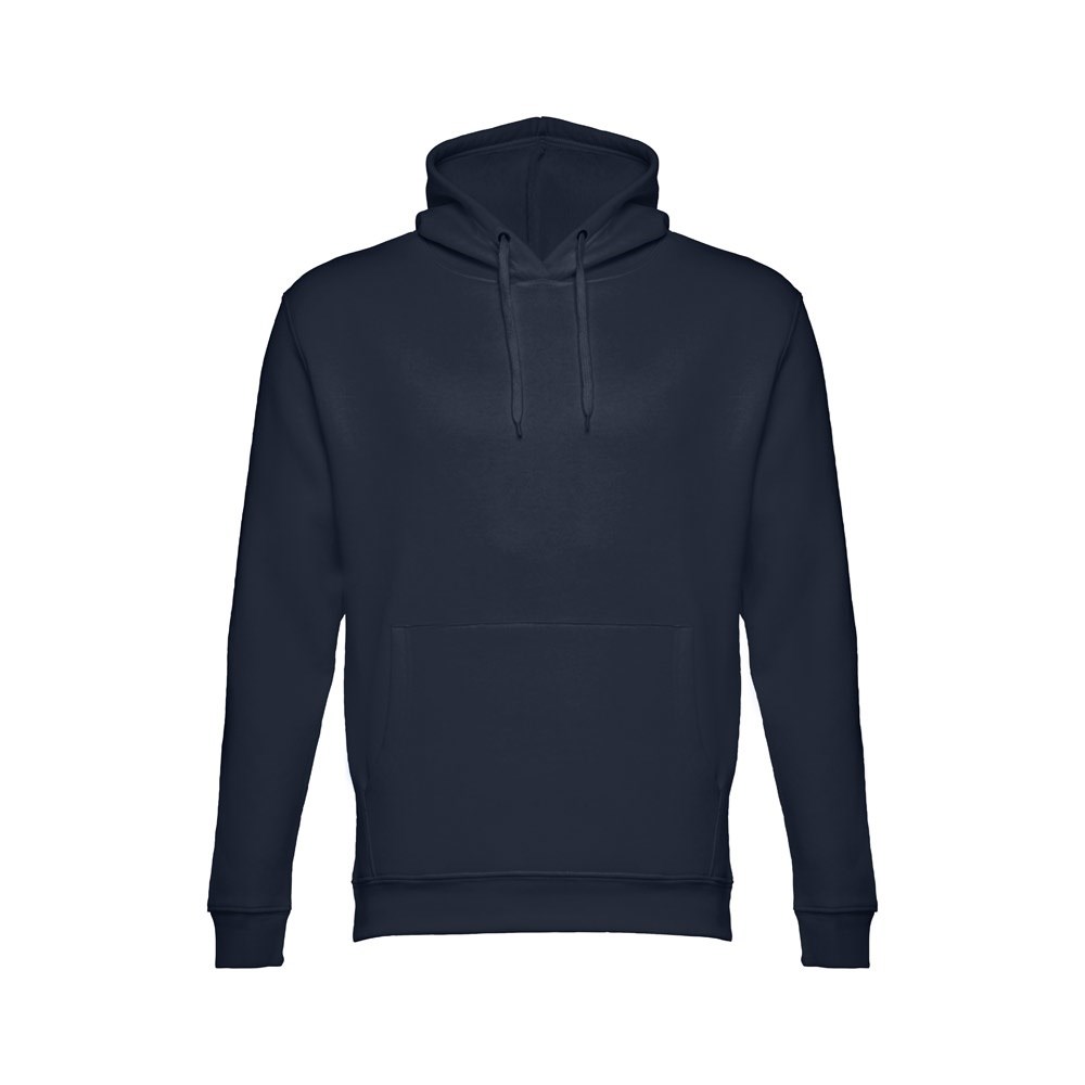 Sweatshirt aus 50% Baumwolle und 50% Polyester (320g/m²), unisex mit einer Kapuze mit Kordelzug. Innen kardiert, 1x1 Ripp, Bund an Ärmel und einer Kängurutasche. Größen: XS, S, M, L, XL, XXL