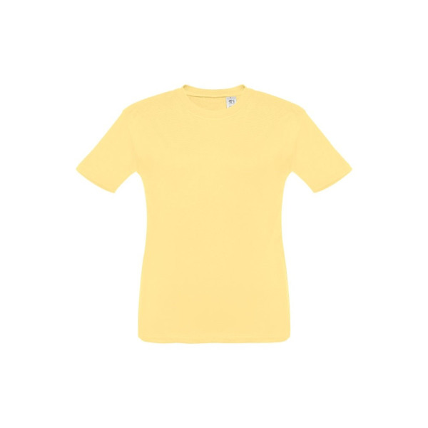 Kinder T-Shirt aus 100% Strickjersey und Baumwolle (150g/m²), unisex mit geripptem Kragen in 1x1 Ripp, Jersey-Verstärkung und Doppelnaht an den Ärmeln und Saum. Größen: 2, 4, 6, 8, 10, 12