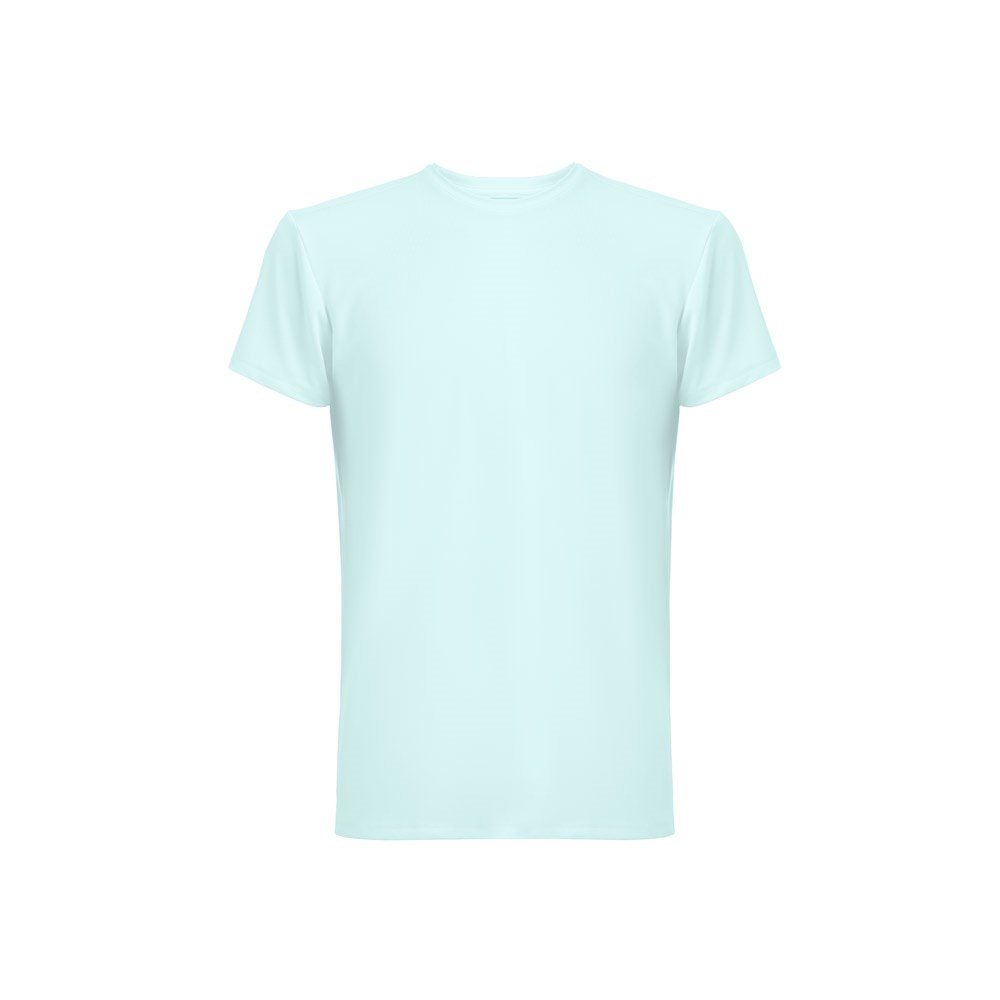 T-Shirt aus Jersey (190 g/m²), bestehend aus 90 % Polyester und 10 % Elastan. Mit 1x1-Rippstrickkragen. Doppelnähte an Ärmeln und Saum. Lieferung in einer Papprolle. Größen: XS, S, M, L, XL