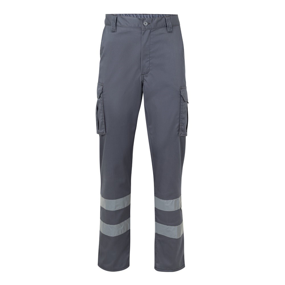 Multi-Pocket-Stretchhose (240 g/m²) aus Baumwolle (46%), EME (38%) und Polyester (16%). Elastischer Bund, reflektierende Streifen an der Hosenunterseite und sechs Taschen (2 französische Taschen, 2 seitliche Blasebalgtaschen und 2 hintere Blasebalgtaschen). Produkt gemäß EU-Verordnung 2016/425, zertifiziert nach EN17353 und Klasse Nº B2. Größe: 34, 36, 38, 40, 42, 44, 46, 48, 50, 52, 54, 56, 58, 60