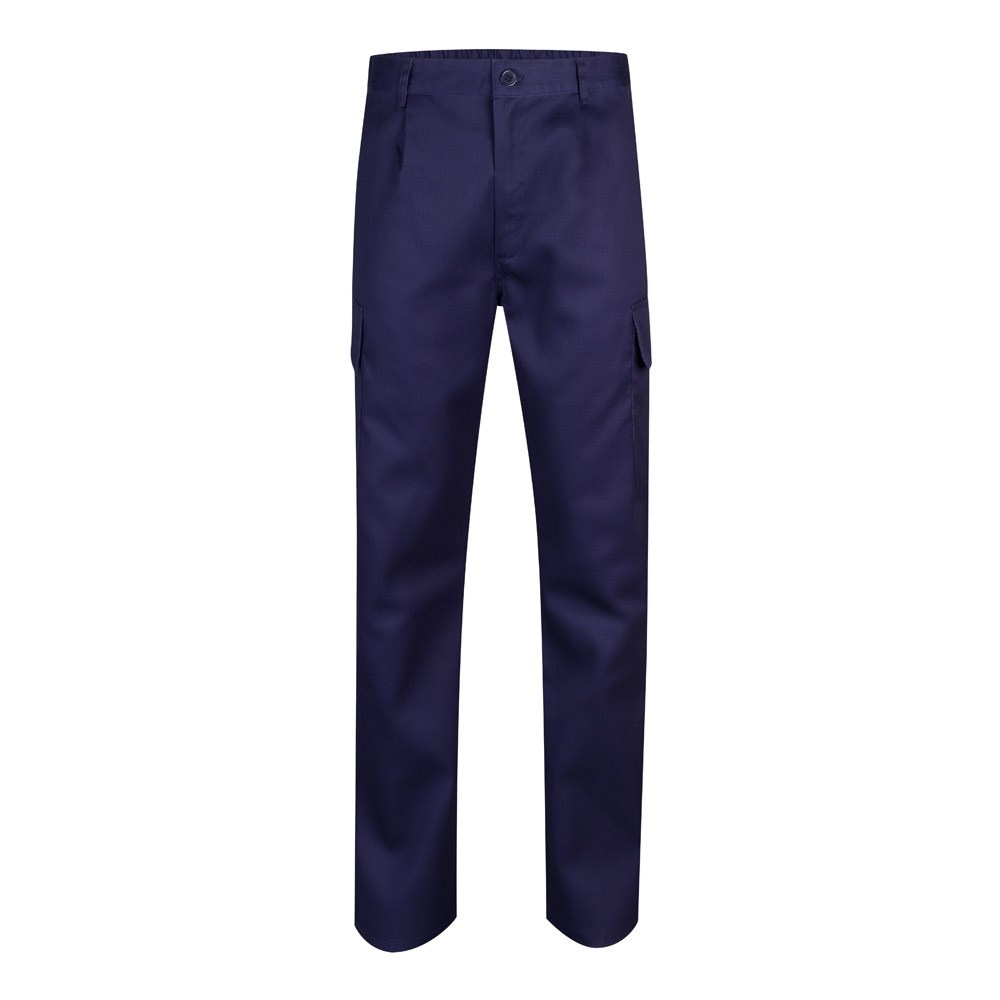 Hose aus Twill mit mehreren Taschen (190 g/m²), aus Baumwolle (20%) und Polyester (80%). Mit elastischem Bund und fünf Taschen (2 Eingrifftaschen, 2 seitliche Zwickeltaschen und 2 Gesäßzwickeltaschen). Größe: 36, 38, 40, 42, 44, 46, 48, 50, 52, 54, 56, 58, 60