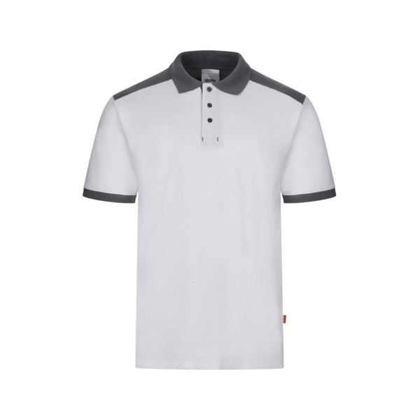 Zweifarbiges Stretch-Piqué-Poloshirt (200 g/m²) mit kurzen Ärmeln, aus Polyester (96%) und Elastan (4%). Mit Knopfverschluss-System. Farblich abgesetzte Knöpfe, gerippter Kragen, Knopfleiste und gerippte Abschlüsse an den Ärmeln. Größe: XS, S, M, L, XL, 2XL, 3XL