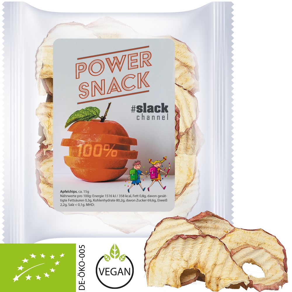 Bio Apfelchips, ca. 15g, Express Maxi-XL-Tüte mit Etikett