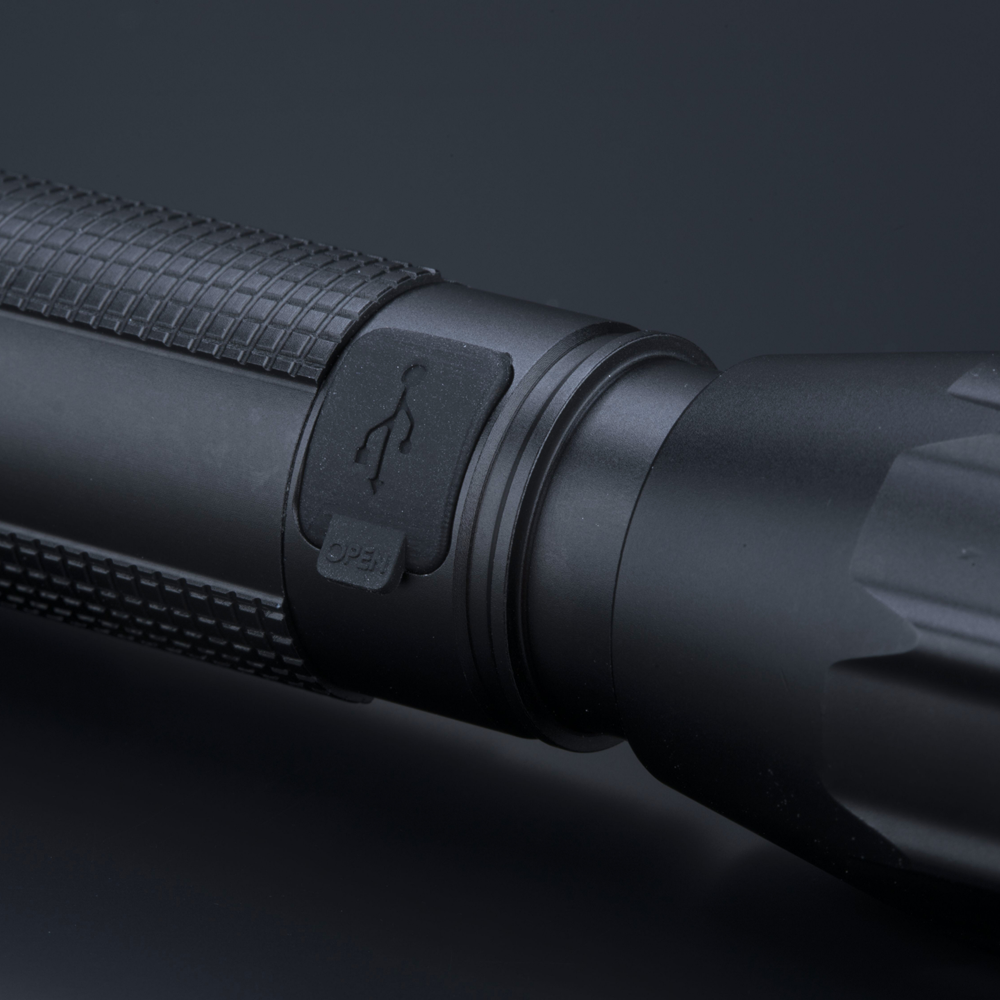 Eine tragbare und technische LED-Taschenlampe, die Funktionalität mit modernen Lösungen kombiniert. Hergestellt aus hochwertigem Aluminium, garantiert sie Langlebigkeit und Widerstandsfähigkeit gegen Beschädigungen. Ausgestattet mit einem Stroboskopmodus und einer Zoomfunktion, die eine Anpassung des Lichtstrahls an unterschiedliche Bedürfnisse ermöglicht. Die Taschenlampe ist über ein Kabel wiederaufladbar, was sie bequem und wirtschaftlich in der Nutzung macht. Zusätzlich wird ein Stoffband mitgeliefert, das eine Befestigung am Handgelenk ermöglicht und vor versehentlichem Herunterfallen schützt.