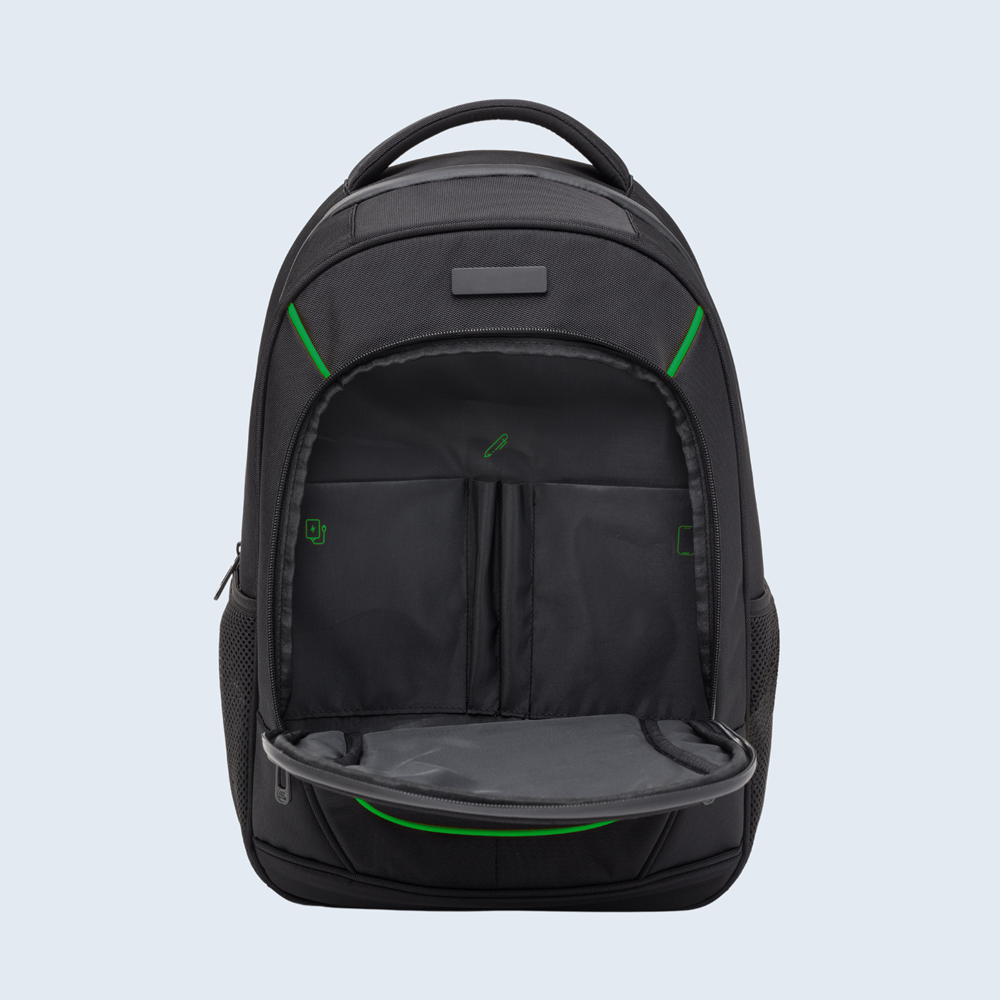 Ein eleganter Business-Rucksack, der darauf ausgelegt ist, Ihre Habseligkeiten für Arbeit oder Reisen zu schützen und zu organisieren. Hergestellt aus strapazierfähigem 1260D-Polyester für Widerstandsfähigkeit gegen Beschädigungen und Langlebigkeit. Die verstärkten Wände bieten zusätzlichen Schutz für den Inhalt, einschließlich eines speziellen gepolsterten Laptopfachs für Geräte bis zu 15". Das kleinere Fach enthält Taschen für kleinere Accessoires. Ausgestattet mit einem atmungsaktiven Rückensystem und verstärkten, verstellbaren Gurten sorgt dieser Rucksack für maximalen Komfort im täglichen Gebrauch. Perfekt für Profis, die Stil und Funktionalität schätzen.
