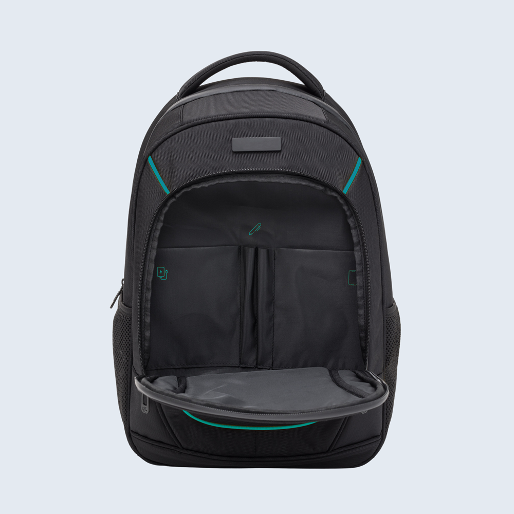 Ein eleganter Business-Rucksack, der darauf ausgelegt ist, Ihre Habseligkeiten für Arbeit oder Reisen zu schützen und zu organisieren. Hergestellt aus strapazierfähigem 1260D-Polyester für Widerstandsfähigkeit gegen Beschädigungen und Langlebigkeit. Die verstärkten Wände bieten zusätzlichen Schutz für den Inhalt, einschließlich eines speziellen gepolsterten Laptopfachs für Geräte bis zu 15". Das kleinere Fach enthält Taschen für kleinere Accessoires. Ausgestattet mit einem atmungsaktiven Rückensystem und verstärkten, verstellbaren Gurten sorgt dieser Rucksack für maximalen Komfort im täglichen Gebrauch. Perfekt für Profis, die Stil und Funktionalität schätzen.