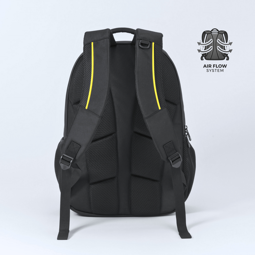 Ein eleganter Business-Rucksack, der darauf ausgelegt ist, Ihre Habseligkeiten für Arbeit oder Reisen zu schützen und zu organisieren. Hergestellt aus strapazierfähigem 1260D-Polyester für Widerstandsfähigkeit gegen Beschädigungen und Langlebigkeit. Die verstärkten Wände bieten zusätzlichen Schutz für den Inhalt, einschließlich eines speziellen gepolsterten Laptopfachs für Geräte bis zu 15". Das kleinere Fach enthält Taschen für kleinere Accessoires. Ausgestattet mit einem atmungsaktiven Rückensystem und verstärkten, verstellbaren Gurten sorgt dieser Rucksack für maximalen Komfort im täglichen Gebrauch. Perfekt für Profis, die Stil und Funktionalität schätzen.