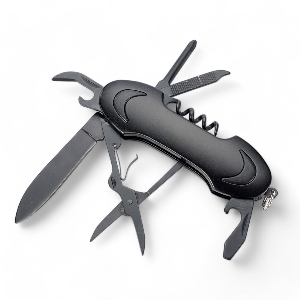Taschenmesser Colorado aus eloxiertem Metall, das Zuverlässigkeit und Langlebigkeit garantiert. Besitzt einen eingebauten Korkenzieher, einen Flaschenöffner, einen Schraubendreher, eine Nagelfeile und eine Schere. Das Produkt ist in einer eleganten Schachtel verpackt.