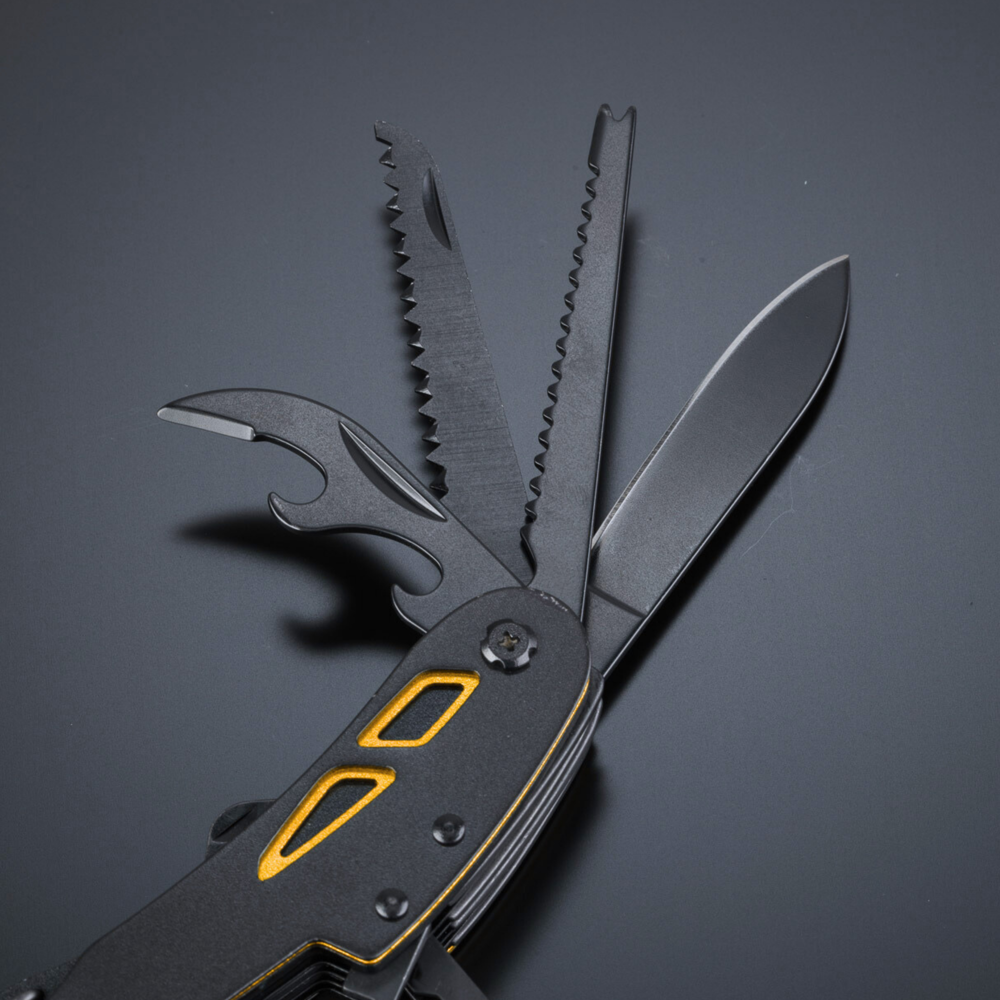 Optima-Taschenmesser im neuen Gewand, hergestellt aus hochwertigem Edelstahl mit Titanbeschichtung für verbesserte Härte und zusätzliche Korrosionsbeständigkeit. Bunte Einsätze am Griff zur dezenten Verzierung. Hauptmerkmale: Schere, Messer, Holzsäge, Flaschen- und Dosenöffner, Fischschaber, Korkenzieher, Locher (zum Durchstechen von z. B. einer Saftdose), Einfädler (zum Flicken von Schläuchen, Nähen von Segelflößen, Flicken eines Reifens), Nagelfeile, Kreuzschlitzschraubendreher. Das Taschenmesser mündet in einen Karabiner, sodass Sie es immer dabei haben können.