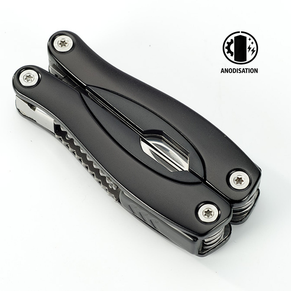 Ein sehr langlebiges Multifunktionswerkzeug aus Edelstahl. Enthält ein professionelles Federsystem und Safety-Funktion – ein Schutz gegen das ungewollte Schließen der Klingen. Das Produkt ist in einer Schutztasche verpackt.