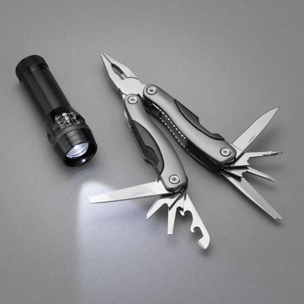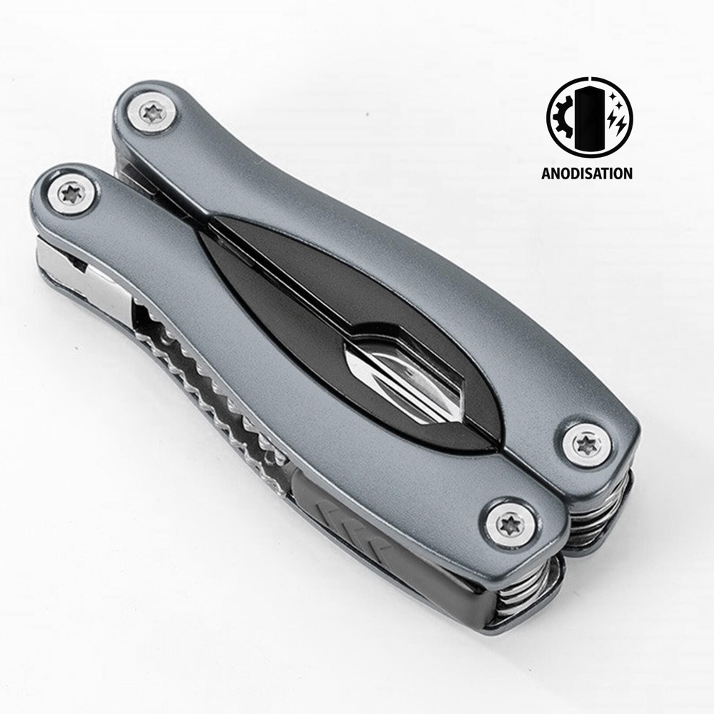 Ein sehr langlebiges Multifunktionswerkzeug aus Edelstahl. Enthält ein professionelles Federsystem und Safety-Funktion – ein Schutz gegen das ungewollte Schließen der Klingen. Das Produkt ist in einer Schutztasche verpackt.
