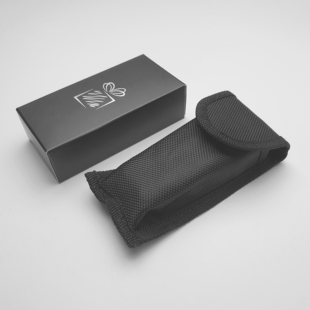 Verpackungsinformationen: Schutztasche und elegante schwarze Kartonverpackung
