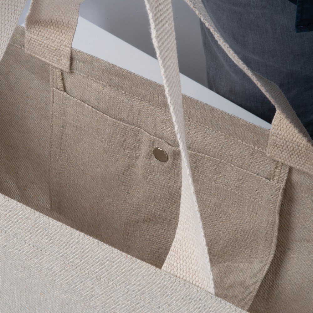 Mit einer Grammatur von 200 g/m² bietet sie Stabilität und Langlebigkeit für den täglichen Einsatz. Perfekt für Einkäufe, Freizeit oder Events. Die großzügige Größe sorgt für viel Stauraum, während das Material aus recycelter Baumwolle eine Zeichen setzt – ideal für ein einzigartiges Branding! Ihr Logo wird per Siebdrucktransfer auf der Tasche abgebildet.