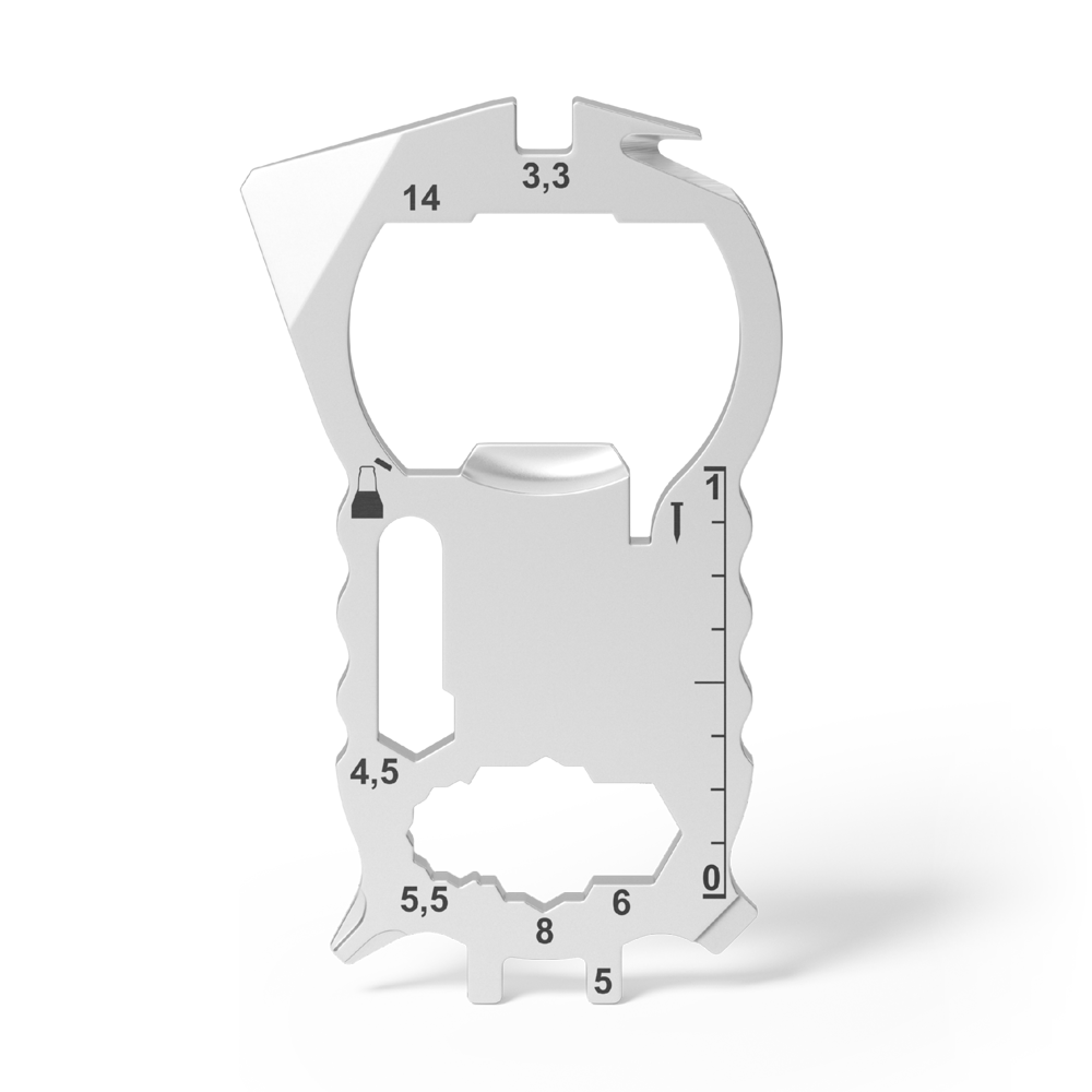 Reduce to the max! Halb so klein, dabei genau so schlau und funktional: Diese kompakte Variante unseres KEY TOOL work besticht mit 17 Funktionen - vom Heizungsentlüftungsschlüssel, Bithalter bis zum Paketöffner: Nützlichste Alltagshelfer, die sich dank nochmals reduzierter Größe an wirklich jedem Schlüsselbund unterbringen lassen.
