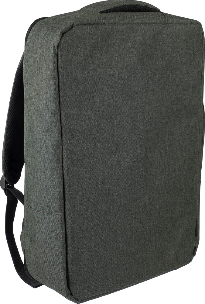 Laptop-Rucksack aus 300D-Polyester mit 210D-RPET-Futter. Er verfügt über ein großes Reißverschlussfach mit mehreren Fächern, ein Laptop-Fach mit Klettverschluss für einen 15””-Laptop und hat ein Fassungsvermögen von 12 Litern. Zur Ausstattung gehören eine verstärkte, belüftete Rückwand, verstellbare Schultergurte, ein seitlicher Tragegriff und ein Trolley-Gurt. Tragkraft: 10 kg.