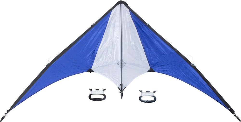 Drachen aus Ripstop-Polyester 210T mit einer Breite von 160 cm und zwei Kunststoffgriffen. Einzeln verpackt in einer Tasche mit verstellbarem Tragegurt.