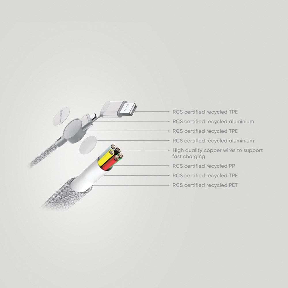 Oakland RCS rKunststoff 1,2m 6-in-1 Fast-Charging 45W Kabel